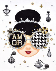 She explores the dualities of beauty and pressure, desire and solitude. Her signature Sealed Smile series features wide-eyed girls with oversized, ornate sunglasses and awkward braces, figures that conceal vulnerability behind glamorous façades. These portraits reflect modern life’s contradictions: the curated exterior versus the emotional interior, the brilliant versus the brittle. This tension between brightness and melancholy, ornament and emptiness, forms the core of her visual language.